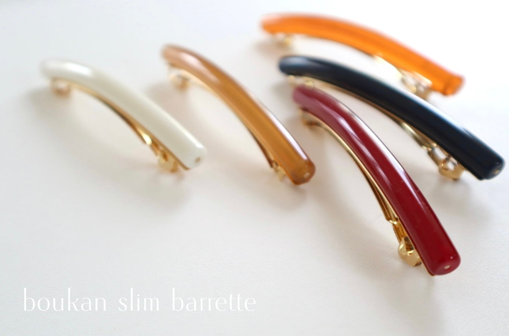 大人気だったスリムバレッタの新作! ヴィンテージの素材を使った筒状のフォルムがポイント。 夏のヘアアレンジのポイントにおすすめです。