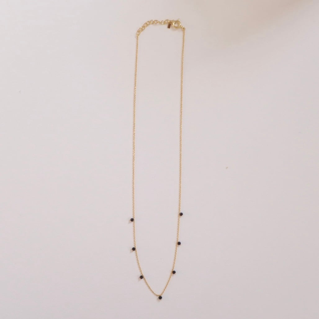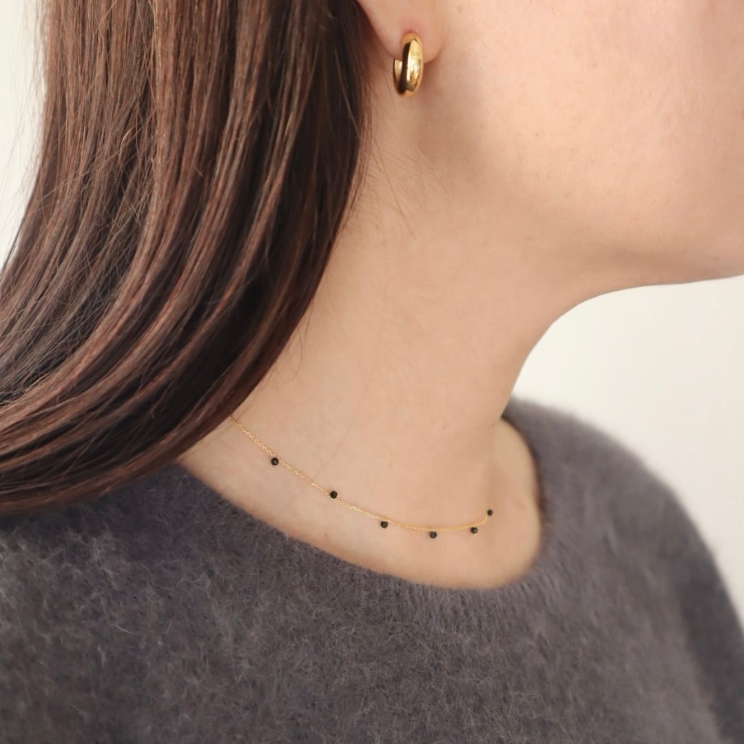 小さなブラックスピネルがポイントのチェーンネックレス。